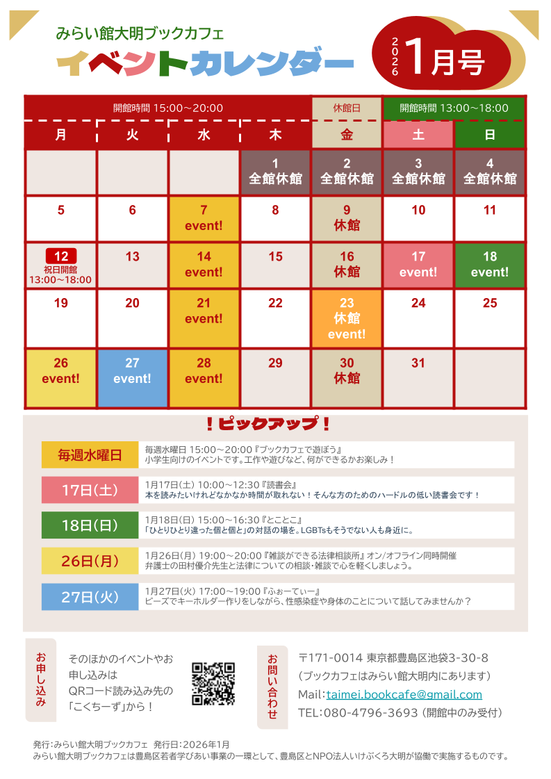 1月のみらい館大明ブックカフェのお知らせ